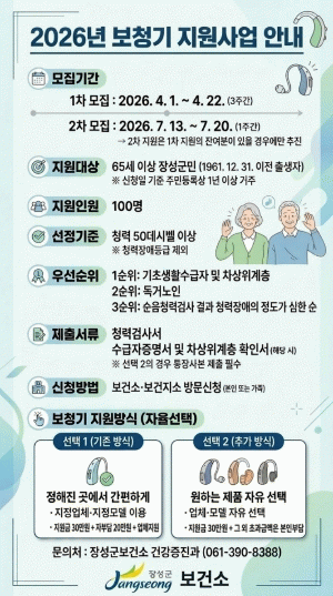 올해부터는 기존 방식에 더해, 희망 업체의 제품을 구입할 수 있도록 선택의 폭을 넓히기로 했다. 보청기를 자유롭게 선택한 뒤 군이 30만 원을 지원하는 방식이며, 나머지 비용은 본인이 부담한다.