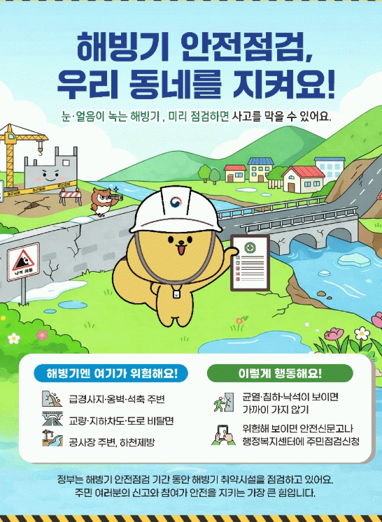 해빙기는 겨울철 얼어 있던 땅이 녹으면서 지반이 약해지고, 비가 내릴 경우 토사 유실이나 붕괴 위험이 커지는 시기다.