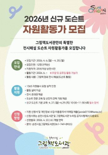 기타 자세한 사항은 순천시립그림책도서관으로 문의하면 된다.
