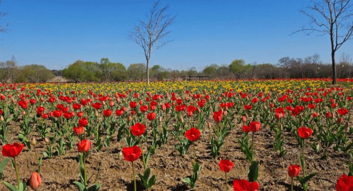 현재 노란색과 빨간색 튤립이 점진적으로 개화하고 있으며, 이달 중 단지 전체가 만개해 절정에 이를 것으로 예상된다.