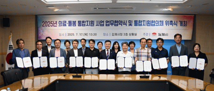 시 관계자는 “통합돌봄은 시민의 삶을 지키는 가장 기본적인 정책이자 도시의 지속가능성을 좌우하는 핵심 전략”이라며 “김제시는 시민이 살던 곳에서 존엄한 삶을 이어갈 수 있도록 촘촘한 돌봄체계를 구축해 나가겠다”고 밝혔다.