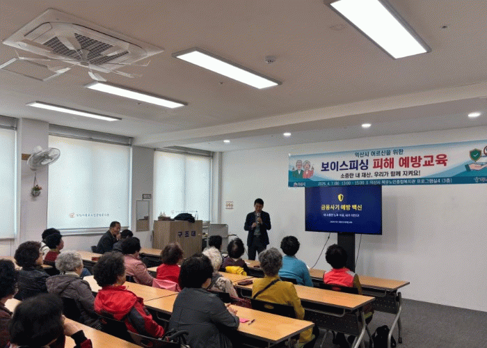 익산시 관계자는 "보이스피싱은 사전 예방이 무엇보다 중요한 만큼 어르신들이 범죄 수법을 미리 알고 대응할 수 있도록 교육을 마련했다"며 "앞으로도 유관기관과 협력해 시민의 소중한 자산을 지키는 금융 안전망 구축에 힘쓰겠다"고 말했다.
