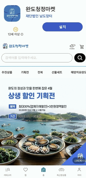 한편 ‘완도 청정 마켓’은 지난 1월 단장 후 이벤트 등을 꾸준히 진행 중이며, 전라남도 온라인 쇼핑몰인 ‘남도 장터’와 연동하여 특산품 홍보 및 판매에 힘쓰고 있다.