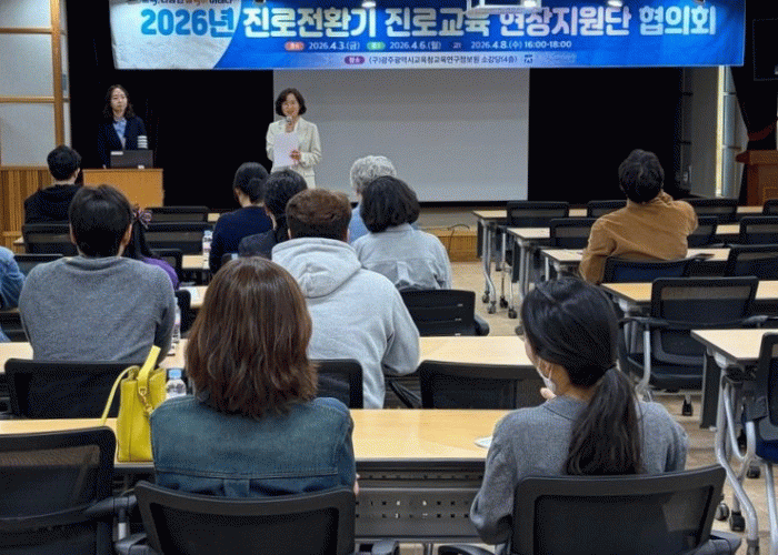 시교육청은 사업이 내실 있게 추진되도록 지난 3~8일 구 광주교육연구정보원 소강당에서 ‘2026 진로전환기 진로교육 현장지원단 협의회’를 개최하고 학교급별 지원 방향과 현장 적용 방안 등 실행 전략을 논의했다.