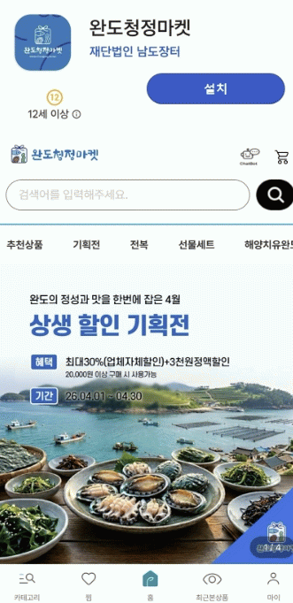 한편 ‘완도 청정 마켓’은 지난 1월 단장 후 이벤트 등을 꾸준히 진행 중이며, 전라남도 온라인 쇼핑몰인 ‘남도 장터’와 연동하여 특산품 홍보 및 판매에 힘쓰고 있다.