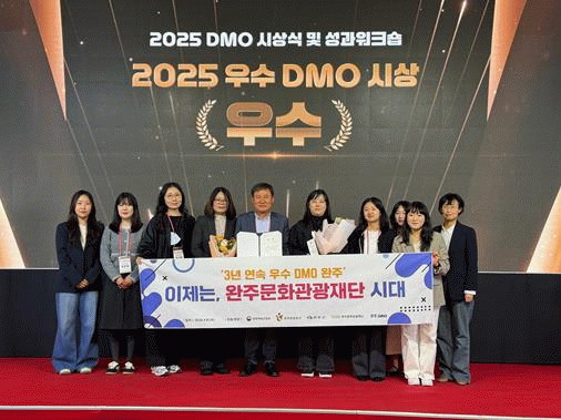 전북 완주군의 지역관광추진조직(DMO)과 완주문화관광재단은 2023년‘우수’, 2024년‘최우수’, 2025년 ‘우수’로 선정되어 3년 연속 꾸준한 성과를 인정받으며 지역 관광 활성화의 기반을 공고히 하고 있다.