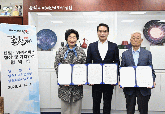 시는 14일, 한국외식업중앙회 남원시지부 및 대한숙박업중앙회 남원시지부와 업무 협약을 체결하고, 축제 기간 관광객이 신뢰할 수 있는 환경을 조성하기로 뜻을 모았다.