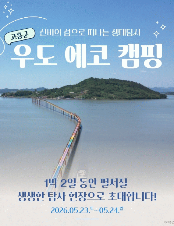 군 관광정책실 관계자는 “접수 시작 30분 만에 신청이 마감되는 등 이번 에코 캠핑에 대한 높은 관심을 확인할 수 있었다”며 “과학 콘텐츠 전문가들과 내실 있게 준비해 우도가 생태관광의 최적지임을 알리고, 참가자들에게 차별화된 관광 경험을 제공하겠다”고 말했다.