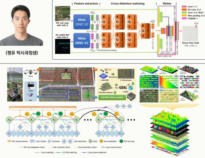 연구팀은 서로 다른 시점과 형태의 데이터를 하나의 좌표계로 정밀하게 연결하는 크로스모달 AI 기술을 기반으로, 과수원과 같은 비정형 환경에서도 안정적으로 동작하는 새로운 공간 인식 방법을 제시했다.