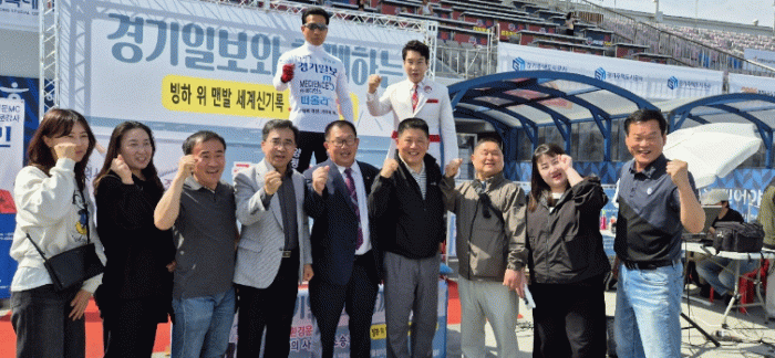조승환 씨는 4월 19일 수원종합운동장에서 열린 경기일보 마라톤 대회 개막식에 초청돼 마라톤 참가자와 시민 1만 5천여 명이 지켜보는 가운데 ‘빙하 위 맨발 오래 서 있기’ 퍼포먼스를 선보였다.