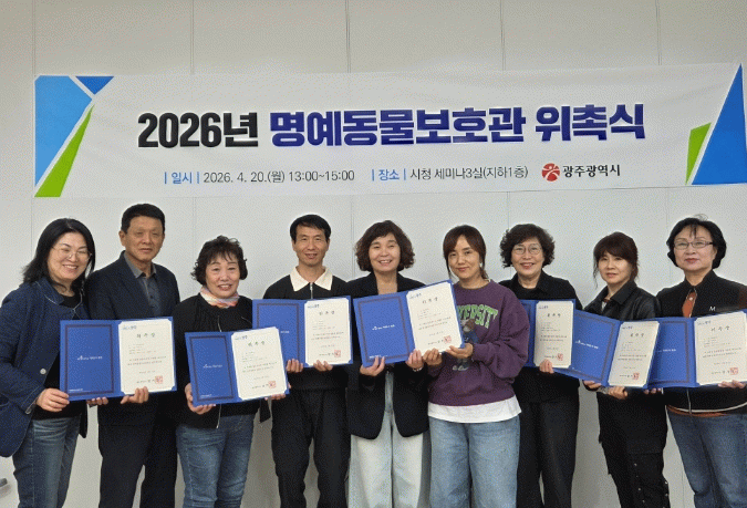 배귀숙 농업동물정책과장은 “새롭게 위촉된 분들과 기존 보호관들이 협력해 현장에서 활발히 활동하길 기대한다”며 “명예동물보호관들과 함께 사람과 동물이 공존하는 행복한 광주를 만드는 데 최선을 다하겠다”고 말했다.