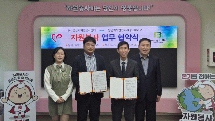 군산시자원봉사센터와 영인바이오는 앞으로도 지역사회 발전과 나눔 문화 확산을 위한 협력사업을 지속적으로 이어갈 계획이다.