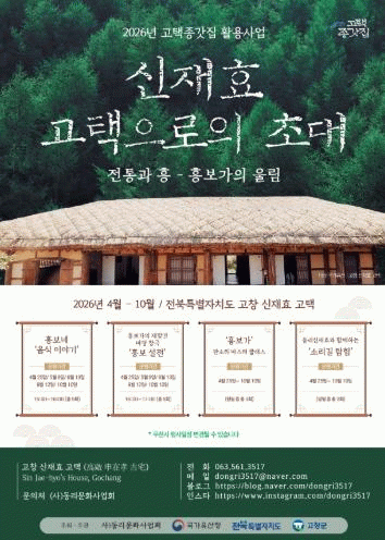 신유섭 동리문화사업회 이사장은 “신재효 선생이 실제로 거주하며 예술 활동을 펼쳤던 고택에서 전통문화를 직접 체험할 수 있도록 프로그램을 준비했다”며 “이번 사업을 통해 고창의 소중한 문화유산이 보다 많은 이들에게 알려지고, 지역 문화 향유 기회가 확대되기를 기대한다”고 말했다.