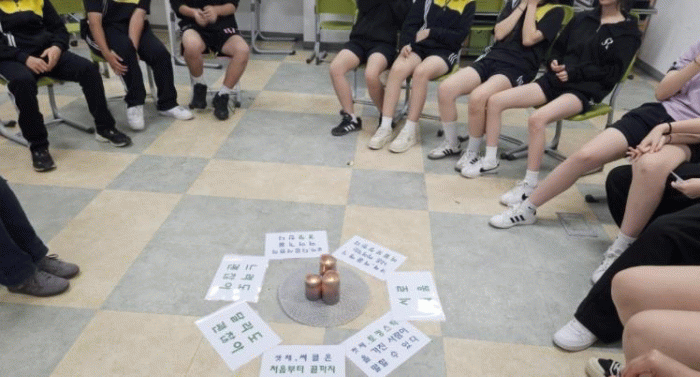 참여 청소년들은 모두가 평등한 위치에서 자유롭게 의견을 나눌 수 있도록 둥글게 둘러앉아 서클을 구성하고, 발언권을 상징하는 ‘토킹스틱’을 활용해 차례로 자신의 생각을 공유했다.