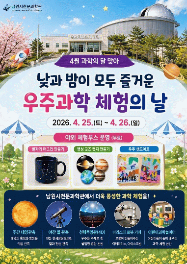 남원시 관계자는 “시민들이 일상 속에서 과학을 자연스럽게 접할 수 있도록 이번 행사를 준비했다”며, “가족과 함께 과학을 놀이처럼 즐기며 소중한 추억을 만드시길 바란다”고 전했다.