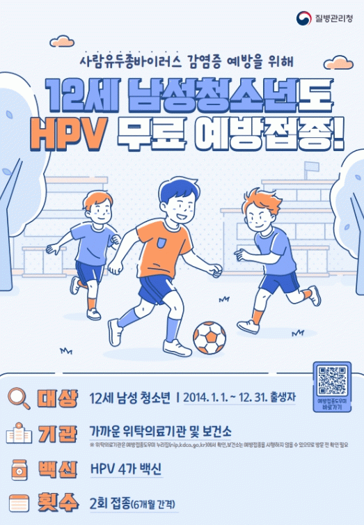 기존에는 12~17세 여성 청소년과 18~26세 저소득층 여성만을 대상으로 지원해 왔으나, 질병관리청의 지침에 따라 올해부터는 2014년 출생 남성 청소년도 무료 접종 혜택을 받을 수 있게 됐다.
