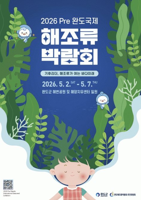 ‘2026 pre완도국제해조류박람회’는 5월 2일부터 7일까지 6일간 완도 해변공원과 완도해양치유센터 일원에서 ‘기후 리더, 해조류가 여는 바다 미래’를 주제로 개최된다.