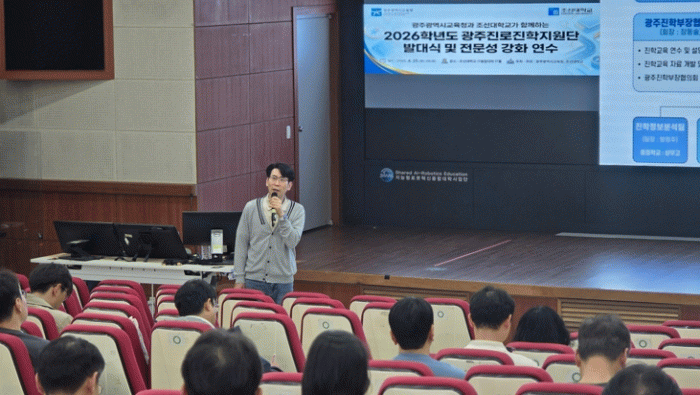 시교육청은 지난 25일 조선대학교 IT융합대학 IT홀에서 ‘2026학년도 광주진로진학지원단 발대식’을 개최하며 광주진로진학지원단의 공식 활동을 알리는 한편 전문성 강화 연수를 진행했다.