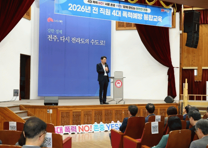 우범기 전주시장은 “4대 폭력 예방은 단순한 의무를 넘어 서로를 존중하고 보호하기 위한 기본적인 조직문화”라며 “간부 공무원들이 앞장서 성평등하고 건강한 직장문화를 만들어 주길 바란다”고 말했다.