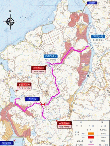 농림축산식품부의 농촌용수이용체계재편사업은 과거 단일 수원공의 용수를 해당 관개지역에만 급수하는 개념에서 벗어나, 여러 개의 수원공을 포괄하는 권역 개념에서 전체적인 용수공급과 수요를 고려하는 접근방식으로서 다목적 용수를 공급하기 위한 사업으로 총사업비 285억원 전액 국비로 추진된다.