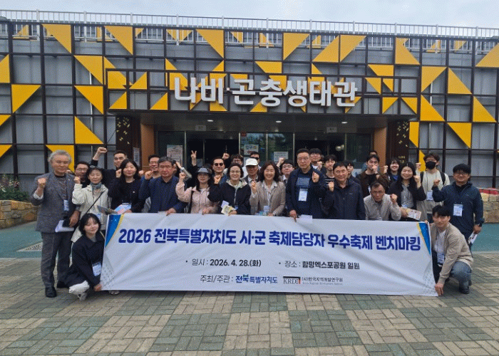 신원식 전북자치도 문화체육관광국장은 “타 지역 우수 축제 사례를 적극 벤치마킹해 지역에 적합한 창의적 축제 모델을 발굴해 나가겠다”며 “정책적 지원과 현장 역량 강화를 통해 도내 축제 경쟁력을 높여 나가겠다”고 밝혔다.