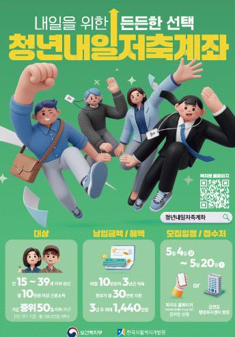 시 관계자는 “경제적 기반이 취약한 청년들이 이번 청년내일저축계좌를 통해 미래를 설계할 수 있는 소중한 종잣돈을 마련하기 바란다”며 “앞으로도 청년들의 자립을 돕기 위한 다양한 지원책 마련에 최선을 다하겠다”고 밝혔다.