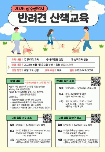 배귀숙 농업동물정책과장은 “이번 교육은 반려인이 반려견의 행동을 깊이 이해해 양육 역량을 높이는 한편 비반려인을 배려하는 올바른 산책 문화를 실천하는 계기가 될 것이다”며 “사람과 동물이 공존하는 도시, 광주를 만들기 위해 시민들의 많은 관심과 참여를 바란다”고 밝혔다.