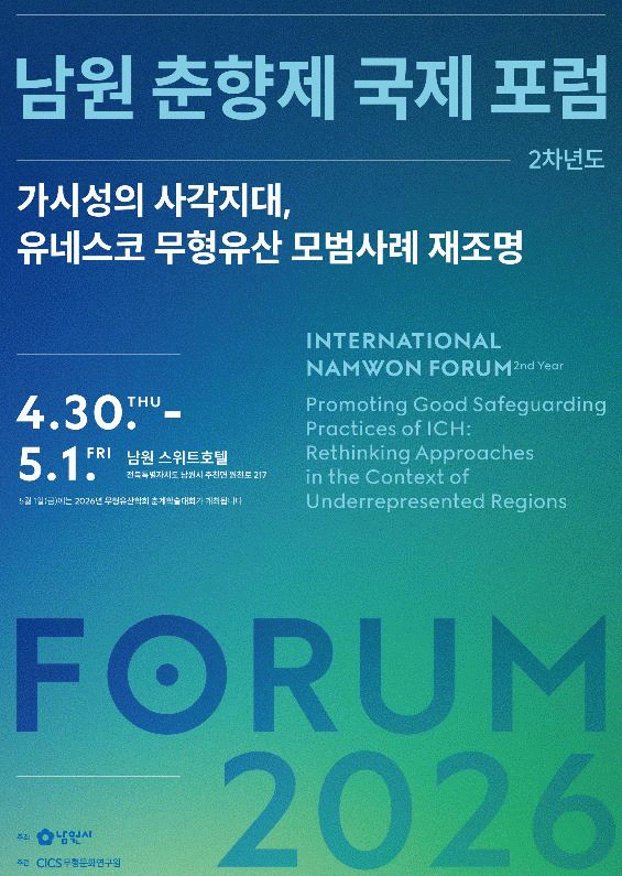 한편, 이번 포럼은 남원시가 주최하고, CICS 무형문화연구원이 주관했다.