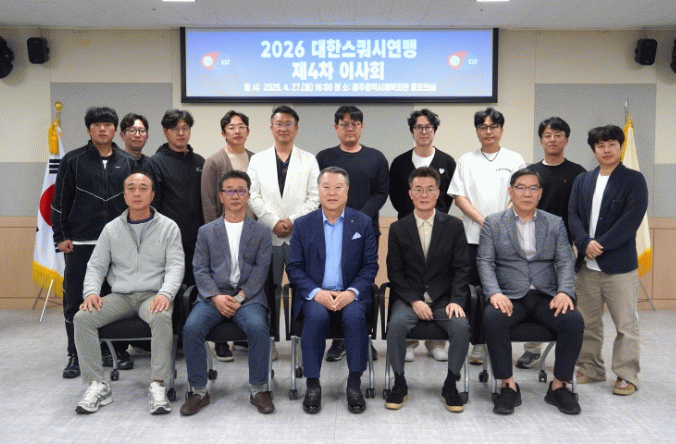 이날 광주광역시체육회관 중회의실에서 대한스쿼시연맹 제4차 이사회에 앞서 전달식이 진행됐다. 대한스쿼시연맹 박세준 회장을 비롯해 임효택·하호성·장현기·정창욱·이재훈 부회장과 전상완 이사 등 20여명이 참석한 가운데 광주광역시체육회 전갑수 회장에게 감사패를 전달했다.