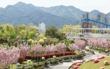 곡성군, 섬진강기차마을 겹벚꽃 만개 ‘절정’