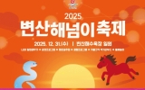 무안군 클릭뉴스2025. 12.18[클릭뉴스]부안군은 오는 31일 서해안 대표 해넘이 명소인 변산해수욕장에서 2025 변산 해넘이축제를 개최한다고 밝혔다. 이번 축제는 한 해를 마무리하며 변산의 아름다운 해넘이를 배경으로 군민과 관광객이 함께하는 체험형·감성형 연말 축제로 오후 2시부터 밤 9시까지 진행되며 해넘이가 예상되는 오후 5시 30분을 전후해 다양한 퍼포먼스가 펼쳐질 예정이다. 식전 행사로는 변산지역 난타팀 ‘바람꽃난타’와 농악단 ‘천둥소리’가 흥을 돋우고 이어 3인조 팝페라그룹 ‘라오니엘’이 무대에 올라 연말 분위기를 한층 고조시킬 계획이다. 축제…