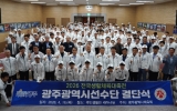 광주광역시 클릭뉴스2026. 04.16[클릭뉴스]광주광역시체육회(회장 전갑수)가 16일 오후 국민생활관 세미나실에서 ‘전국생활체육대축전’에 참가하는 선수단의 선전을 기원하는 결단식을 개최했다. 이날 결단식에는 전갑수 광주광역시체육회장을 비롯해 구제길 동구체육회장, 정천규 서구체육회장, 정희환 북구체육회장, 배영모 광산구체육회장, 광주광역시체육회 윤웅철, 박종규 부회장 등 종목단체 관계자 180여명이 참석해 선수단의 선전을 기원했다. 이날 행사는 선수단의 훈련 모습과 주요 활약상을 담은 영상시청을 시작으로 참가계획 보고, 선수대표 선서와 단복전달식 순으로 진행됐다. …