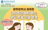 광주광역시 클릭뉴스2026. 04.16[클릭뉴스]광주시교육청은 학생들의 심리·정서를 더욱 촘촘하게 살피기 위해 ‘2026년 메타버스 상담 프로그램’을 개편 운영한다. 메타버스 상담프로그램은 지난해 도입된 비대면 상담 서비스로 중‧고등학생과 상담이 가능한 특수학생을 대상으로 운영한다. 기존 대면 상담을 보완하고 익명성과 접근성을 높인 것이 특징이다. 학생들은 ▲개인 영역(우울감, 불안감, 정서조절, 또래관계 등) ▲가족 영역(가족 내 의사소통, 가족 갈등 등) ▲학교생활 영역(결석, 학업 스트레스, 대인 관계 등) ▲생활습관 영역(비만, 금연, 금주, 게임, 도박 등…