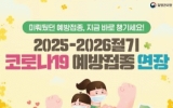 전라남도 클릭뉴스2026. 04.16[클릭뉴스]전라남도는 여름철 코로나19 재유행에 대비해 당초 오는 4월 30일까지였던 예방접종 기간을 6월 30일까지 2개월 연장했다. 접종 대상은 65세 이상 미접종자와 장기이식 후 면역억제제를 복용 중이거나 항암치료 중인 면역저하자, 감염취약시설 입원·입소자 등이다. 14일 현재 전남지역 코로나19 접종률은 51.9%(전국 42.7%)로, 65세 이상 절반가량이 아직 접종하지 않은 상태다. 이에 따라 전남도는 고위험군 미접종자의 조속한 접종을 당부했다. 2025~2026절기 백신을 접종한 면역저하자는 접종 후 90일이…
