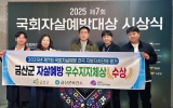 충북 클릭뉴스2025. 12.12[클릭뉴스]금산군은 지난 11일 국회 의원회관 대회의실에서 열린 제7회 국회자살예방대상 시상식에서 군 그룹 우수 지자체상을 받았다. 국회자살예방포럼과 안전생활실천시민연합은 지난 2019년부터 매년 전국 229개 기초지방자치단체를 대상으로 자살예방 활동을 조사하고 있다. 평가는 조직, 예산, 인력, 사업, 자살률 등 5개 영역과 17개 지표에 따라 점수화되며 지자체 규모에 따라 △인구 30만 미만 시 △인구 30만 이상 시 △구 △군 등 4개 그룹으로 구분하고 그룹별 상위 3개 지자체를 우수지자체로 선정했다. 금산군은 동일 그룹…
