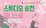 광주광역시 클릭뉴스2025. 12.09[클릭뉴스]순천시는 오는 26일까지 지역 문화콘텐츠 핵심인재 양성을 위한 ‘스튜디오 순천(Studio Suncheon)’ 웹툰, 애니메이션 스쿨 교육생을 모집한다고 밝혔다. ‘스튜디오 순천(Studio Suncheon)’은 대한민국 문화도시 사업으로 추진하는 콘텐츠 전문 아카데미로, 지역에 정착한 콘텐츠 기업과 협력해 순천 산업현장에 특화된 실무 중심 교육과정을 제공한다. 교육은 웹툰, 애니메이션 2가지 분야로 구성되며, 웹툰은 글로벌웹툰허브센터에서, 애니메이션은 글로컬 애니메이션‧문화콘텐츠 캠퍼스에서 2026년 1월부터 4월…