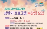여수시 클릭뉴스2026. 03.04[클릭뉴스]여수시립도서관에서는 시민들의 자기계발을 지원하고 어린이의 사고력을 키우기 위해 오는 3월 4일부터 6일까지 ‘상반기 프로그램’ 수강생을 선착순으로 모집한다. 여수시립도서관 쌍봉도서관에서는 ▲동화구연 지도사 자격증 과정 ▲그림책 하브루타:질문하는 그림책 등 2개 강좌를 운영하며, 현암도서관에서는 ▲시니어 그림책 강사(2급) 양성 과정 ▲문해력을 키우는 책 읽기 2개 강좌를 개설한다. 수강 신청은 여수시립도서관 누리집을 통해 가능하다. 수강료와 재료비는 강좌별로 다르며, 전액 본인 부담이다. 기타 자세한 사항은 여수…