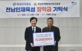 전라남도 클릭뉴스2025. 12.02[클릭뉴스]전라남도는 고광일 목포한국병원 원장은 2일 전남인재평생교육진흥원에 전남인재육성 장학금 1천만 원을 기탁했다고 밝혔다. 전남인재평생교육진흥원 회의실에서 열린 기탁식에는 고광일 원장, 범희승 전남인재평생교육진흥원장 등이 참석했다. 1988년 개설된 목포한국병원은 20개 진료과와 600병상을 갖춘 전남 서부권역 대표 종합병원이다. 2025년 보건복지부 ‘포괄 2차 종합병원 지원사업’에 선정되며 지역 필수의료를 책임지는 핵심 의료기관으로 자리매김했다. 특히 지난 2021년부터 지역 인재 육성을 위해 2천만 원의 장학금을…