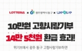 동구 클릭뉴스2025. 11.28[클릭뉴스]광주 동구는 고향사랑기부제 활성화를 위해 민간 플랫폼 위기브·롯데멤버스·롯데리아와 협력해 특별 기부 이벤트를 진행한다고 밝혔다. 이번 이벤트는 기부자가 보다 쉽고 매력적인 혜택 속에서 고향사랑기부에 참여할 수 있도록 마련된 것으로, 특히 롯데멤버스(엘포인트)·롯데리아와 제휴를 통해 실질적인 혜택을 제공함으로써 지역경제와 기부 문화 확산에 기여하고자 마련됐다. 이번 행사는 이달 27일부터 오는 12월 31일까지 진행된다. 엘포인트 앱을 통해 ‘광주동구&위기브 이벤트’ 누리집에 접속해 광주 동구에 10만 원 이상 기부하면…
