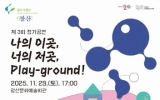 광산구 클릭뉴스2025. 11.25[클릭뉴스]광주 광산구는 29일 오후 5시 광산문화예술회관 대극장에서 2025 꿈의 무용단 ‘광산’ 제3회 정기 공연 ‘나의 이곳, 너의 저곳, 플레이그라운드(Play_ground)’를 개최한다고 밝혔다. 25일 광산구에 따르면, 이번 공연은 올해 꿈의 무용단 ‘광산’에 참여한 아동‧청소년 등 24명의 단원이 각자 좋아하는 ‘놀이터’의 경험과 공간을 출발점으로 삼아, 서로의 세계를 연결하고 하나의 ‘움직임 놀이터’로 확장해 가는 과정을 담았다. ‘나의 이곳, 너의 저곳, 플레이그라운드’는 10명의 예술가와 함께 아동‧청소년이 창…