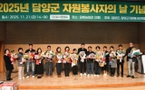 담양군 클릭뉴스2025. 11.25[클릭뉴스] 담양군은 21일 담빛농업관에서 자원봉사자 200여 명이 참석한 가운데 ‘2025 담양군자원봉사자 기념식’을 열고 올해 지역에서 활동한 자원봉사자들의 노고를 격려했다. 이번 기념식은 지역사회 곳곳에서 활동한 자원봉사자들의 헌신을 기리고 자원봉사 문화 확산을 도모하기 위해 마련됐다. 행사는 유공자 표창패 수여, 성과보고, 역량강화 교육, 화합 한마당 순으로 진행됐으며, 다양한 프로그램을 통해 참여자들의 호응을 얻었다. 이날 재난 복구, 취약계층 돌봄, 지역 환경 개선 등 여러 분야에서 활동한 자원봉사자에 …