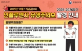 임실군 클릭뉴스2025. 11.25[클릭뉴스]임실군 보건의료원이 2025~2026 절기 인플루엔자 유행이 예년보다 이르게 시작됨에 따라, 인플루엔자 예방 수칙을 준수하도록 당부했다. 인플루엔자는 국내에서 겨울철에 유행하는 대표적인 급성호흡기감염병으로, 갑작스러운 고열과 기침, 인후통 등의 증상이 특징적이다. 매년 11월부터 4월까지 가장 많은 환자가 발생하며, 65세 이상 고위험군은 폐렴 등 중증으로 진행될 수 있어, 인플루엔자 감염 예방을 위한 예방 수칙을 준수하는 것이 중요하다. 인플루엔자 예방을 위해서는 ▲65세 이상 어르신 등 고위험군은 인플루엔…