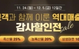 화순군 클릭뉴스2025. 11.24[클릭뉴스]화순군은 올해 화순팜 온라인 쇼핑몰 창설 이래 역대 최고 매출 달성에 보답하고자, 이달 24일부터 다음 달 5일까지 12일간'고객과 함께 이룬 역대 매출! 감사 할인전' 이벤트를 추진한다고 밝혔다. 이번 행사는 김장철, 연말 모임 행사 등 겨울나기를 겨냥한 특별 기획전으로 준비했다. 전 품목 20% 할인 쿠폰을 회원당 5매씩 지급하며, 축산물 ‘내 사랑 고기’ 코너를 통해 5% 추가 할인하는 등 일부 품목은 평상시보다 최소 25% 이상 저렴하게 구매할 수 있다. 또, 국거리 재료, 탕 제품 등을 모아 ‘뜨끈한 …