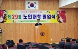 김제시 클릭뉴스2025. 11.18[클릭뉴스]김제시는 대한노인회 김제시지회가 지난 13일, 지회 2층 강당에서 제29회 노인대학 졸업식을 성황리에 개최했다고 밝혔다. 이날 행사에는 노인대학생 190여 명을 비롯해 노인회 임원, 내외빈 등 약 230명이 참석해 졸업생들의 새로운 출발을 함께 축하했다. 행사는 ▲노인강령 낭독, ▲학사보고 및 졸업증 수여, ▲시상식 순으로 진행됐으며, 정성주 김제시장과 서백현 김제시의회 의장 등 주요 내빈이 참석해 졸업생들에게 축하와 격려의 뜻을 전했다. 특히, 올해 졸업생들은 수개월 동안 다양한 교양·건강·문화 교육을 통해 평생…
