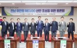 전라남도 클릭뉴스2025. 11.17[클릭뉴스]전라남도의회는 지난 11월 14일 도의회 초의실에서 열린 ‘전남 무안형 RE100 산단 조성을 위한 토론회’를 성공적으로 개최했다고 밝혔다. 이번 토론회는 정부의 역점 에너지정책인 RE100 산단 조성과 관련해 무안군의 가능성과 잠재력, 주체별 향후 과제 등을 논의하기 위해 마련됐다. 이날 행사는 김원이 더불어민주당 전남도당위원장이 영상 축사를 전하고, 강위원 전라남도 경제부지사, 전남도 및 무안군 관계자, 지역 주민 등이 참석해 무안형 RE100 산단에 대한 뜨거운 관심을 드러냈다. 좌장을 맡은 나광국 의원(무안…