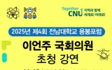 전라남도 클릭뉴스2025. 11.16[클릭뉴스]이언주 국회의원이 전남대학교 용봉포럼에서 한미 산업동맹의 흐름 속에서 호남경제의 새로운 성장 전략과 산업적 돌파구를 모색한다. 14일 전남대학교(총장 이근배)에 따르면, 오는 11월 18일 오후 2시, 대학본부 국제회의동 2층 용봉홀에서 ‘2025 제4회 전남대학교 용봉포럼’을 개최한다. 이번 포럼은 올해 마지막 용봉포럼으로, 사회 각 분야의 리더들이 모여 국가와 지역의 미래를 논의하는 지식 교류의 장이다. 이날 초청 연사로 나서는 이언주 국회의원(제22대 국회·용인시정)은 더불어민주당 최고위원이자 미래경제성장전략위원…