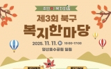 고창군 클릭뉴스2025. 11.10[클릭뉴스]광주광역시 북구는 오는 11일 양산호수공원 일대에서 ‘복지한마당’ 행사를 개최한다고 10일 밝혔다. 이번 행사는 ‘주민이 복지 피움’이라는 주제로 민·관 복지시설 종사자, 지역사회보장협의체 위원, 지역 주민 등 700여 명이 한자리에 모여 노고를 격려하고 복지사업 성과를 공유하기 위해 마련됐다. 올해로 3회째를 맞는 ‘복지한마당’은 북구 지역사회보장협의체의 주관으로 ▲복지 박람회 ▲돌봄이웃 나눔식사 ▲기념식 ▲화합과 소통의 장 순으로 진행된다. 복지 박람회는 복지시설, 공공기관, 구청 복지 관련 부서 등에서 운영하는…