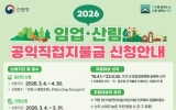 고흥군 클릭뉴스2026. 04.13[클릭뉴스] 고흥군은 임업·산림의 공익기능을 증진하고 임업인의 소득 안정을 지원하기 위해 ‘2026년도 임업·산림 공익직접지불금(임업직불금)’ 대면 등록 신청을 오는 4월 30일까지 접수한다고 밝혔다. 임업직불금은 임업인이 산림의 공익적 기능을 유지·증진하도록 지원하는 제도로, 임산물 생산업과 육림업에 종사하는 임업인과 농업법인을 대상으로 지급된다. 신청은 방법에 따라 ▲비대면 온라인 신청(3월 4일~4월 30일) ▲대면 신청(4월 1일~4월 30일)으로 진행된다. 온라인 신청은 임업-in 통합포털을 통해 가능하며, 방문 신…