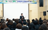 [클릭뉴스]금산군농업기술센터는 지난 5일 센터 대회의실에서 금산군농업대학 수료식을 개최했다. 이번 농업대학은 스마트작물재배, 농산물가공창업, 귀농귀촌 등 3개 과정으로 운영됐으며 총 63회 303시간의 교육을 79명이 수료했다. 수료식은 유공자 시상을 시작으로 기념촬영 후 시낭송, 기타공연, 셔플댄스 등 축하공연이 이어지며 훈훈한 분위기 속에 진행됐다. 또한, 센터 로비에 포토존과 인생네컷 촬영 부스가 마련돼 참석자들에게 즐거움과 추억을 선사했다. 금산군농업대학은 지역 농업인의 역량 향상과 미래세대 농업인 육성을 목표로 매…