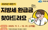 여수시 클릭뉴스2025. 11.03[클릭뉴스]여수시는 시민의 권익 보호와 세정 신뢰도 제고를 위해 11월부터 12월까지 두 달간 ‘하반기 지방세 환급금 찾아주기 추진기간’을 운영한다. 이 기간 시는 미지급 환급금 전수조사를 실시하고 환급 신청 안내를 강화해 시민이 찾아가지 않은 지방세 환급금을 신속하게 돌려줄 계획이다. 지방세 환급금은 자동차세 연납 후 소유권 이전·말소, 국세 경정에 따른 세액 조정, 착오 납부 등의 사유로 발생한다. 그러나 ▴납세자의 거주지 또는 연락처 불일치·불분명 ▴환급계좌 오류 ▴소액으로 인한 미신청 등으로 매년 미환급금이 남는 실정…